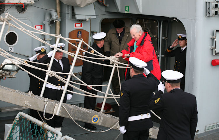 Det lyder alt i alt som en anekdote, man kan underholde med i timevis. Og det gør kaptajnløjtnant Morten Dastrup da også ved lejlighed. Men som med alle gode historier var det alvorligt nok, da regenten, prinsgemalen og deres følge på yderligere syv personer, heriblandt daværende landsstyreformand Kuupik Kleist samt ceremonimester Christian Eugen-Olsen, mod forventning skulle indkvarteres på inspektionsfartøjet Ejnar Mikkelsen. Morten Dastrup, der dengang var NK, kom til at fungere som forbindelsesofficer mellem kongehuset og besætningen.