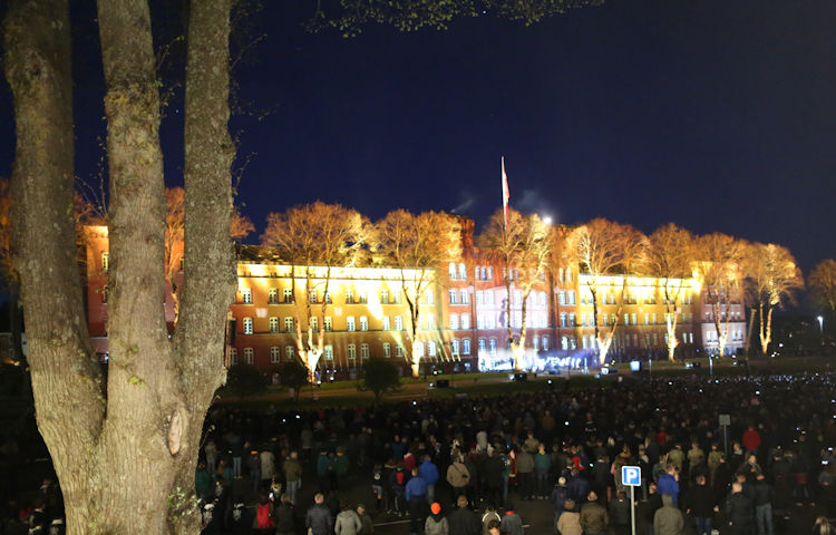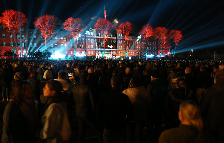 Et 52 m2 stort Dannebrogsflag, 400-500 fakler, 158 vinduer med 314 levende lys, Den Store Tappenstreg og ikke mindst et spektakulært, historiebeskrivende 3D lysshow på kasernefacaden var ingredienser, der skønsmæssigt trak omkring 10.000 tilskuere indenfor hegnet på Haderslev Kaserne til årets lysfest.