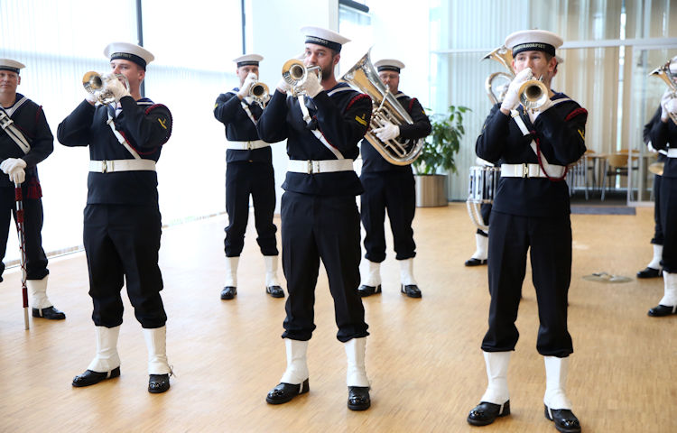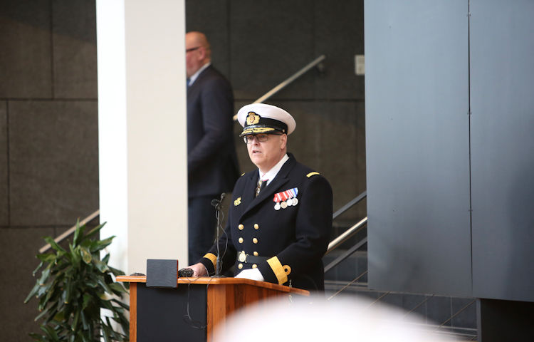 ‘- Lad os slå det fast med det samme; Forsvarets Vedligeholdelsestjeneste har ikke en holdning, hvor det er bedre med sent end aldrig. Vi vil fokusere på at levere i rette tid, rette sted, rette mængde og i rette kvalitet – hver gang, indledte flotilleadmiral Per Hesselberg sin tale til paraden, der var linet op på fem geledder i hovedsædets store, højloftede cafeteria.