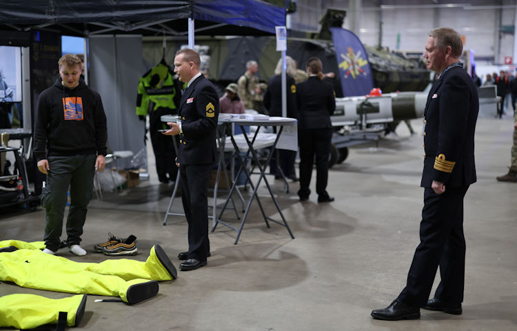 – Vi skal rekruttere og vækste, og derfor skal vi fange de unges opmærksomhed. Lige nu står vi foran vores rekrutteringsstand i forbindelse med erhvervspraktik, som er et område, vi prioriterer højt. Hvert år har vi 500 erhvervspraktikanter i Korsør og 500 i Frederikshavn, og heldigvis har rigtig mange unge været forbi og vist interesse. Samtidig slår vi også på tromme for officersuddannelsen, hvis stand fra FAK, vi har fået trukket herover, da vi jo ikke fylder så meget, siger chefen for Flådestation Frederikshavn, kommandørkaptajn,  Jan Landberg Svendsen.